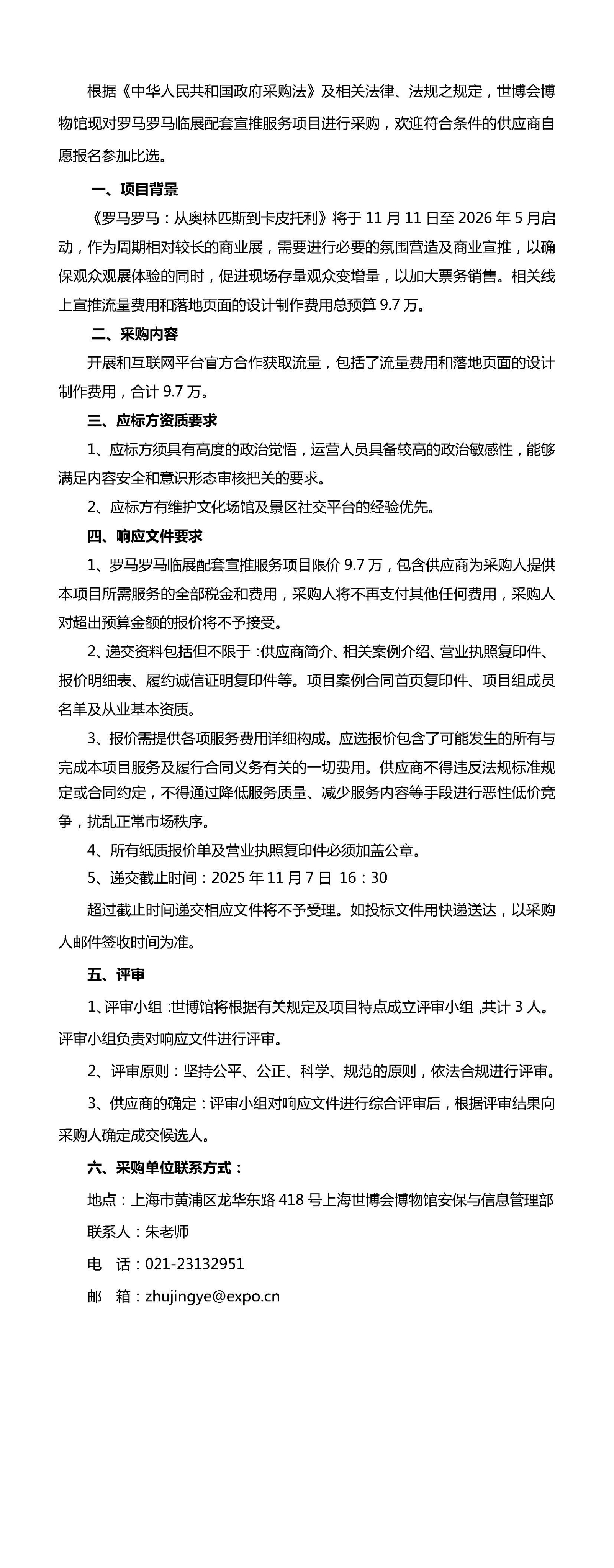 罗马罗马临展配套宣推服务项目采购公告