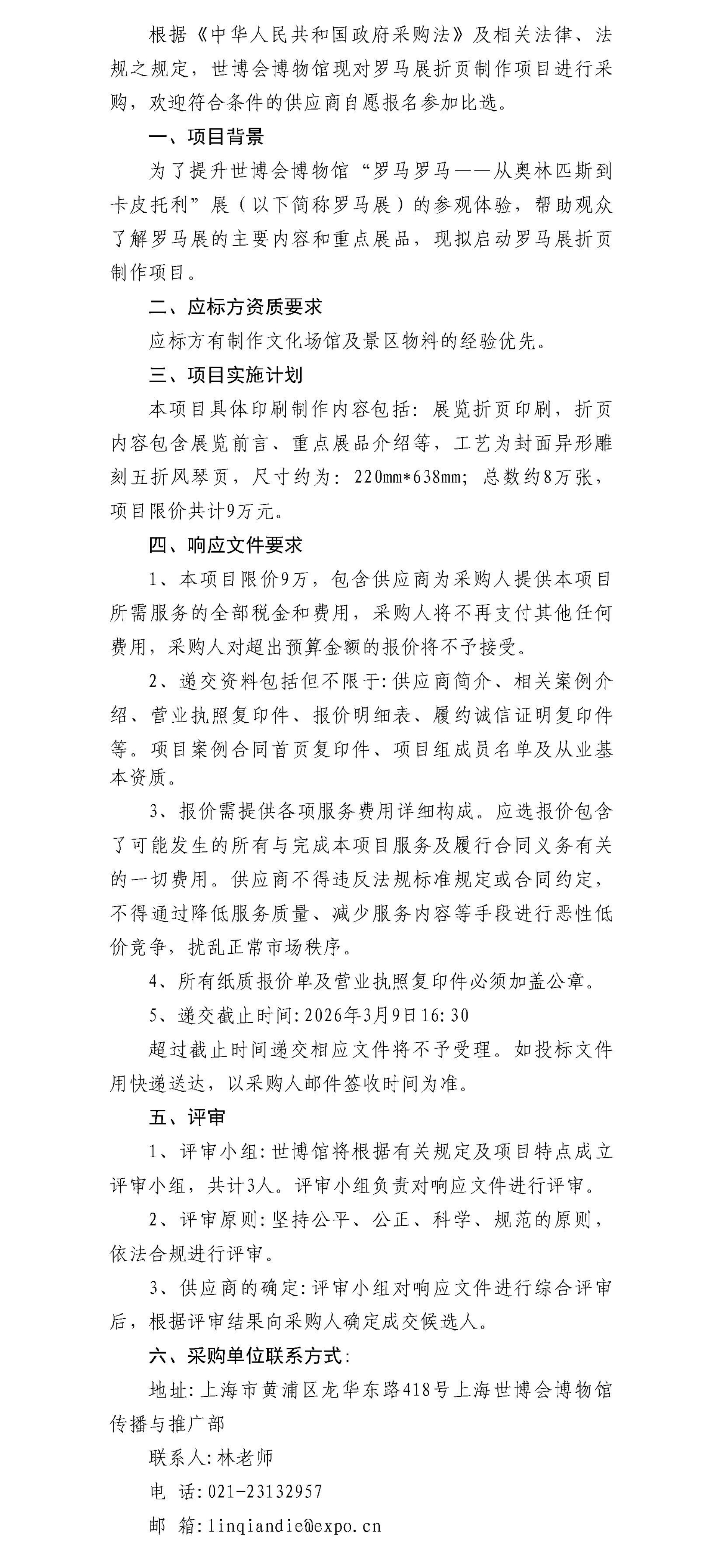 罗马展折页制作项目招标需求