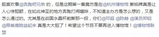 最初网友卡卡_LONG对“跑男”进杭州博物这一事件提出了自己的思考,大部分网友表示进博物打闹行为确实欠妥。