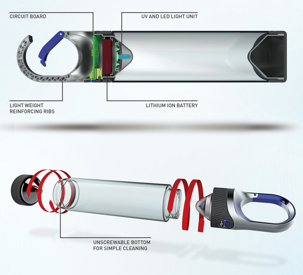 Bottlelight 将便携式紫外线净水器和野营灯整合并集成在一起,这是一个简单的方法来帮助户外运动爱好者降低行李负载。