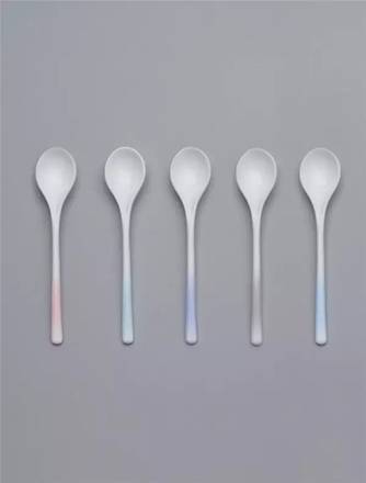 Macaroon系列的晕彩则布满了整个单面,弥漫轻晕的色彩。干净、质地细腻,釉轻薄剔透,色彩均匀分布,仅用来摆放也觉得美好。