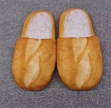 面包造型看起来非常美味,但却不能塞进嘴巴里,因为那可是穿在脚上的拖鞋!