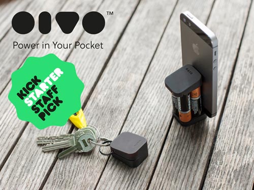 Oivo设计的一款迷你充电宝,它可以挂在钥匙上随身携带。使用时只需将其打开,插入iPhone充电口,放入4节普通的AA电池,即可给手机充电,一组普通的金霸王电池可为iPhone充电近50%。它还可以作为手机支架。这款Oivo只能兼容iPhone 5、5c、4s,目前正在kickstarter