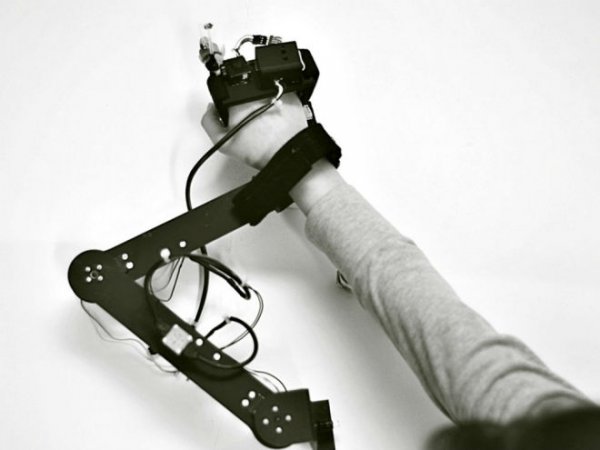 以上内容采用夸张的修辞手法,不过程度比较轻。因为设计师/工程师Saurabh Datta为他在哥本哈根交互设计研究所的毕业设计项目就是利用强迫性的触觉反馈来做出能指导人完成一些简单任务(比如敲击钢琴键或画出基本形状)的设备。也就是说,你不能控制Data的机器,而是被它控制。